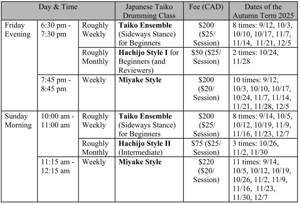Canada Miyake Taiko Kai / Autumn Classes 2025
